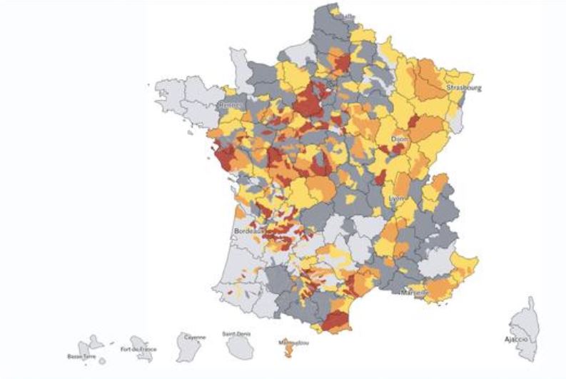Figure 2 : Carte des arrêtés de restriction d’eau en France au 12 septembre 2023 ; Source https://www.data.gouv.fr.