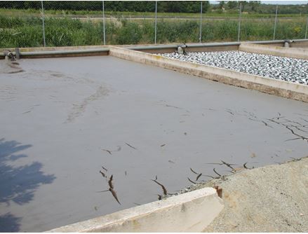 Figure 2 : Séchage de boues sur lits de séchage (boues fraiches et boues sèches) ; crédit photo Patrick Savary.