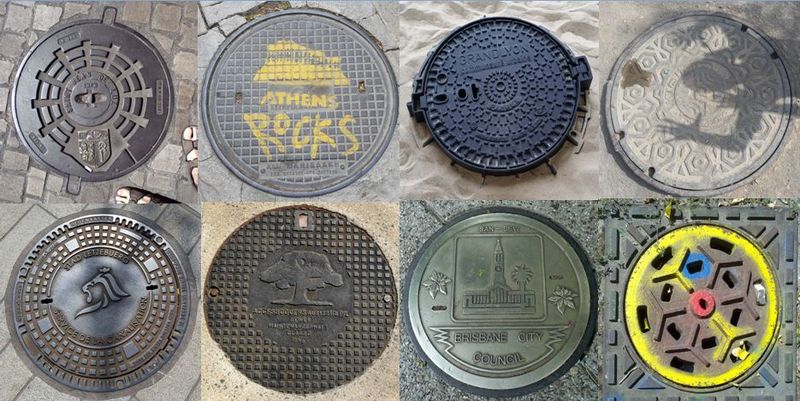 Figure 1 : Beaucoup de collectivités ont personnalisé leurs tampons de regard ; Crédit photos Frédéric Cherqui.