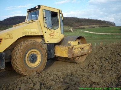Compacteur vibrant à monocylindre. Opération de compactage du remblai expérimental de Terdouest, Héricourt