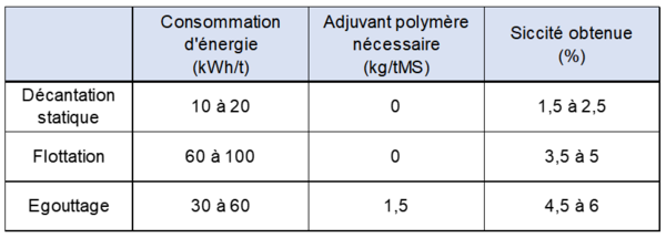 | + | [[File:epaississement_des_boues_comparaison.PNG|600px|center|thumb|<center>''<u>Figure 2</u> : Éléments de comparaison des différents procédés d'épaississement des boues.''</center>]] | ||